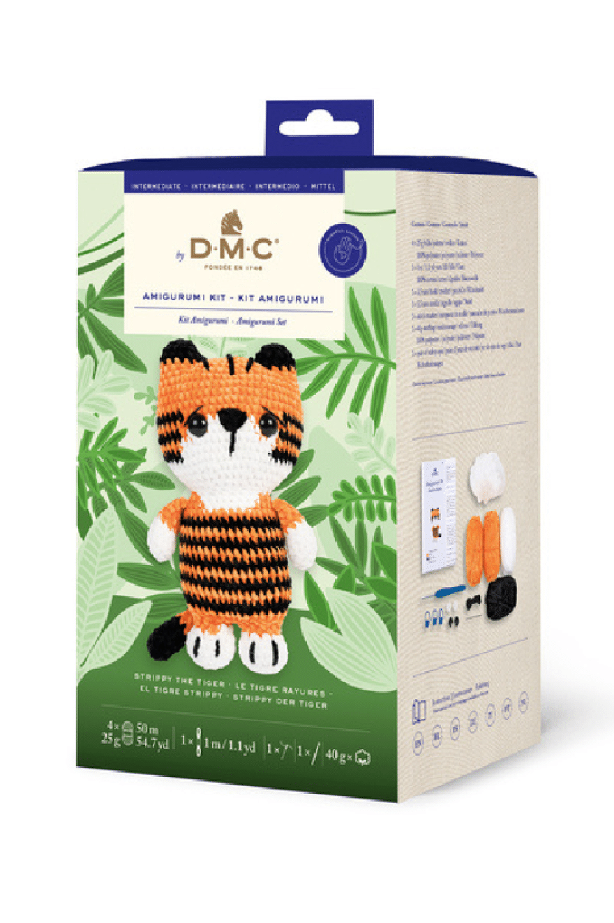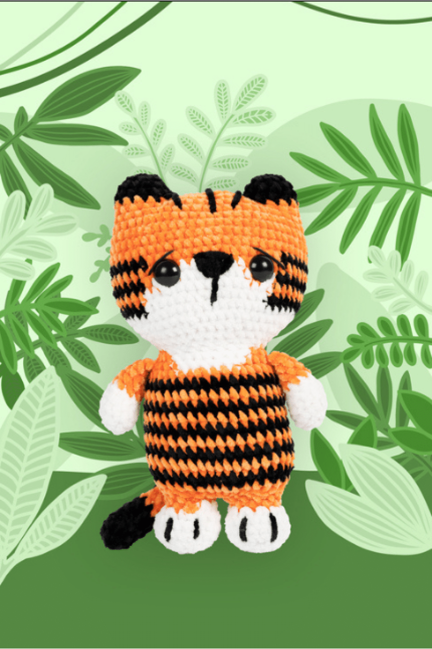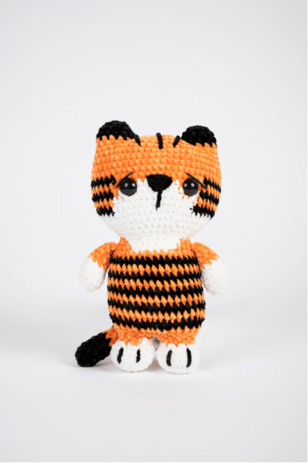 Ce kit amigurumi permet de créer une tigre aux rayures délicates et au style plein de caractère. Il contient tout le nécessaire pour réaliser ce modèle unique.