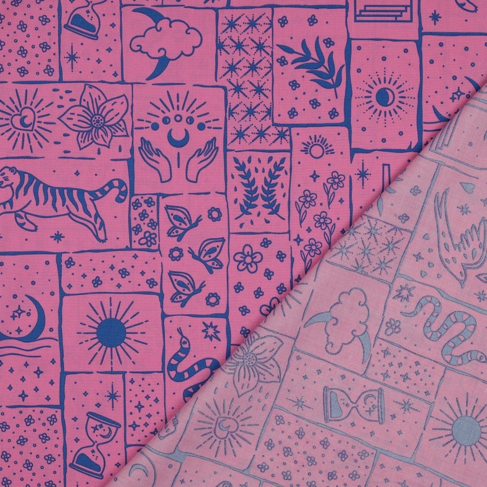 Soyez le premier à laisser votre avis sur “Tissu coton rose et bleu motifs boho”
