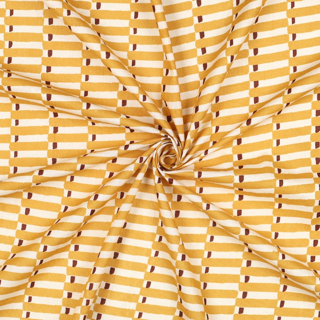 Le Block Print est un tissu artisanal aux motifs élégants et aux couleurs naturelles. Chaque dessin est appliqué manuellement avec des blocs de bois gravés, utilisant des encres végétales pour des teintes durables et douces.