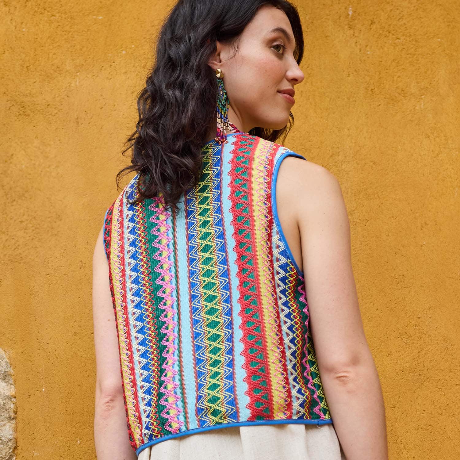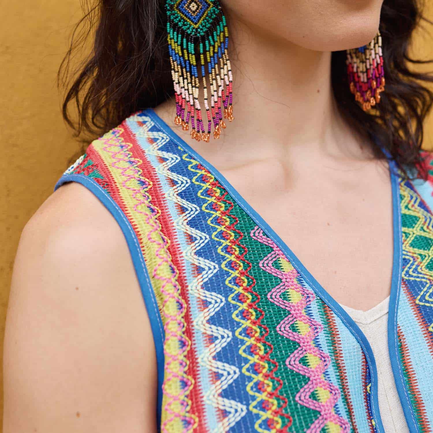 Donnez vie à vos créations avec Multicolor Embroidery Amazonia, un tissu brodé multicolore qui combine des tons vibrants inspirés de la luxuriante forêt amazonienne. Sa composition et sa texture structurée le rendent idéal pour coudre des gilets sans manches, des robes, des jupes et des sacs au style bohème et artisanal.