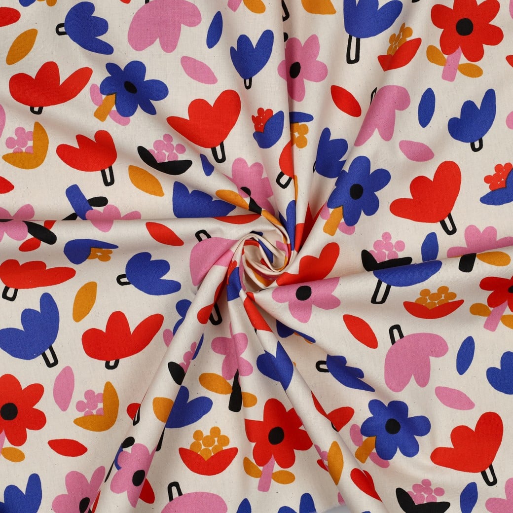 Très belle popeline de coton aux couleurs vives sur fond écru