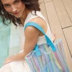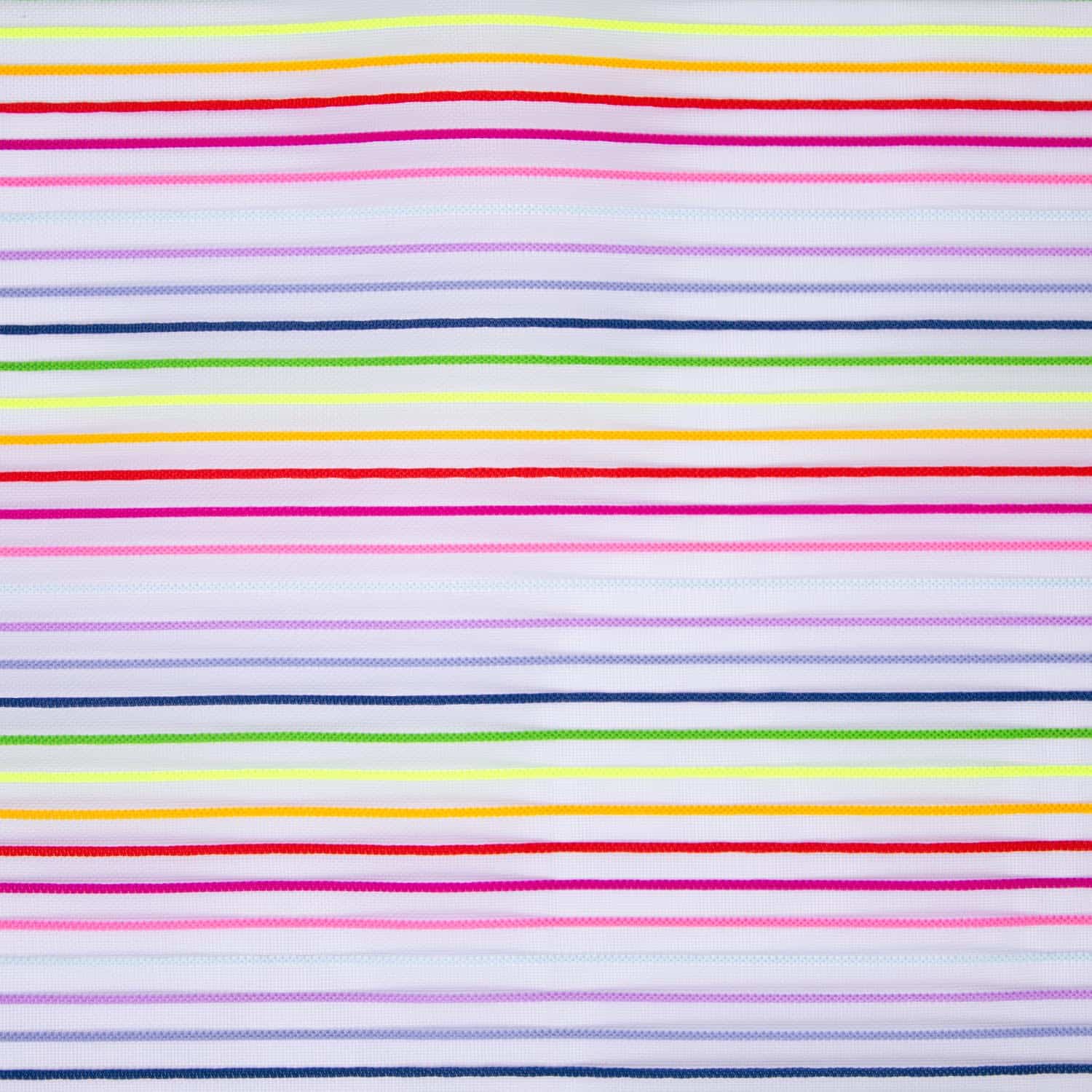 Le tissu Multicolor Mesh est une matière semi-rigide translucide parsemée de rayures fluo – rose, turquoise, vert, jaune ou orange – parfaite pour apporter une note vive, moderne et amusante à vos accessoires de couture créative.